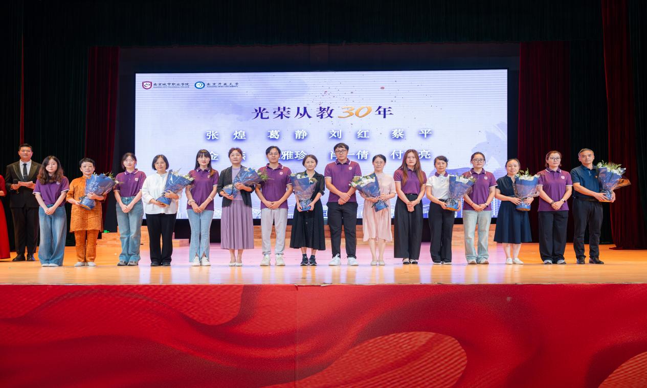 庆祝大会在系列暖场视频《践行教育家精神 校园教育好故事》中开篇,会上表彰了一批为学校内涵式发展作出突出贡献的先进集体和先进个人,并为光荣从教30年的教师代表献上鲜花。