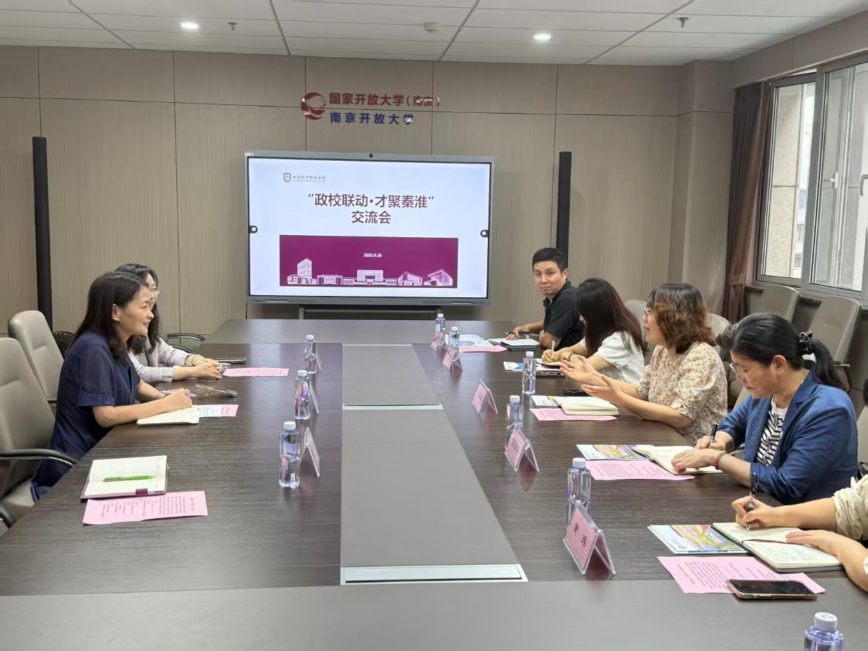 9月28日下午,秦淮区人力资源和社会保障局局长刘爱美一行6人来爱游戏(中国)开展座谈交流,爱游戏(中国)党委委员、副校长张煌,招生就业处处长常征旗及相关人员参会。