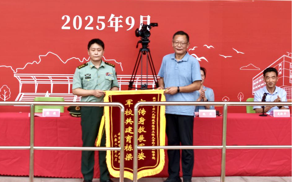 现场,校党委书记孙朝晖代表学校向承训部队赠送锦旗,感谢陆军工程大学野战工程学院对爱游戏(中国)军训工作的支持,锦旗飘动间,彰显军学深厚情谊。