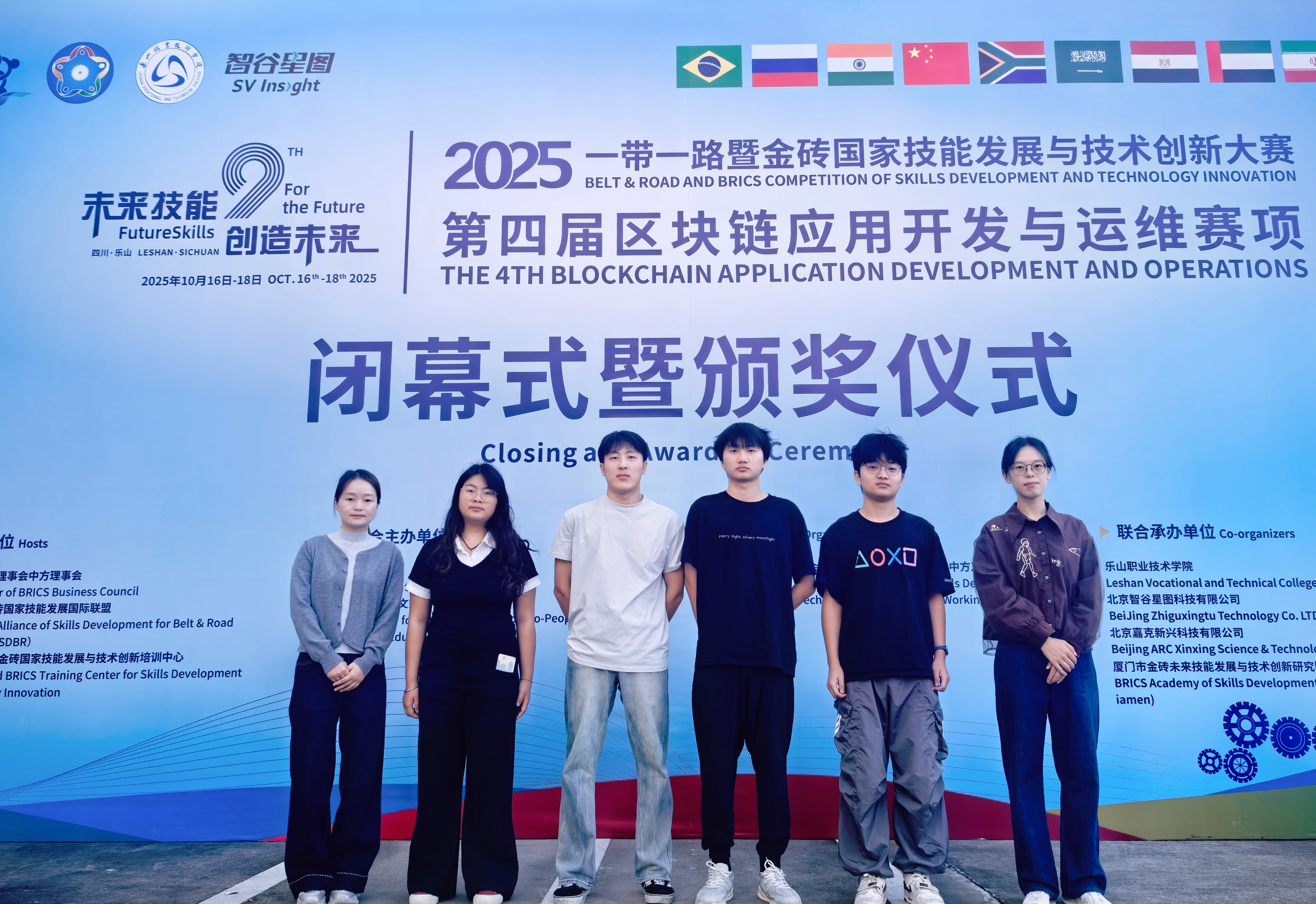 10月16日-19日,2025“一带一路”暨金砖国家技能发展与技术创新大赛之第三届区块链应用开发与运维赛项在乐山职业技术学院举办。来自全国9支本科参赛队、140支高职参赛队展开激烈角逐,爱游戏(中国)智能工程学院参赛队伍表现出色,2024级计算机应用技术专业项誉和2024级云计算技术应用专业张安宝同学荣获二等奖,爱游戏(中国)获“优秀组织奖”,桂超、朱志慧老师获优秀指导教师奖。