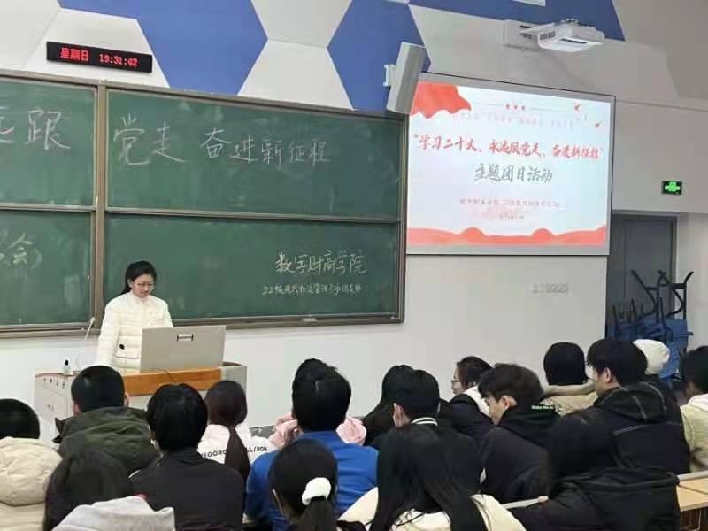为深入学习宣传贯彻党的二十大精神,教育引导学生自觉从党的百年奋斗重大成就和历史经验中增长智慧,增强信心,进一步强化青年的政治品格,传承红色血脉,夯实精神之本,熔铸精神之源,12月初,数字财商学院团总支组织各班级开展“学习二十大、永远跟党走、奋进新征程”主题团日活动。