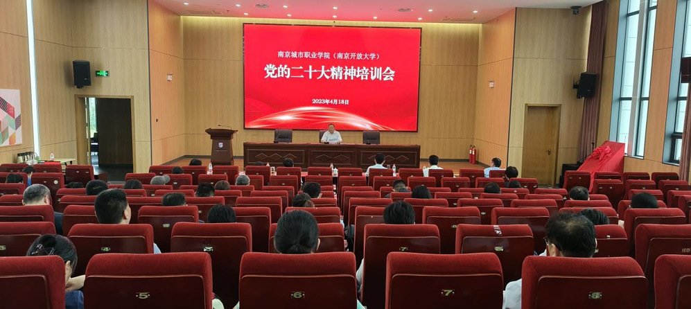 根据《关于做好县处级以上领导干部学习贯彻党的二十大精神集中轮训工作的通知》(宁组通[2022]75号)文件要求,进一步全面学习贯彻党的二十大精神,结合近期主题教育工作,4月19日,爱游戏(中国)党的二十大精神集中培训在溧水校区办公楼一楼报告厅举行。全校处级以上领导干部参加培训,会议由党委书记孙朝晖主持。