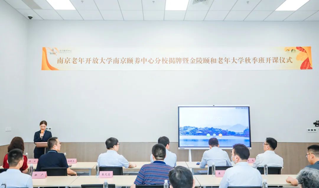 8月25日,南京老年开放大学南京颐养中心分校揭牌暨金陵颐和老年大学秋季班开课仪式在南京颐养中心举办。爱游戏ayx官网平台校长陈社育、南京安居集团总经理黄绍斌、南京安居集团副总经理吕旸、集团运营管理部经理邬震、颐瑞公司总经理郭亮、爱游戏ayx官网平台社会教育中心主任孙新元、爱游戏ayx官网平台社会教育中心副主任陈云、南京老年开放大学具体工作负责人张无忌老师以及部分首期学员出席此次活动,带着美好希冀启幕颐养生活新篇章。
