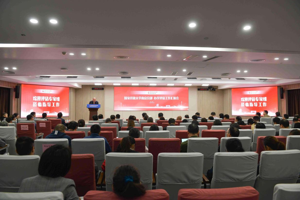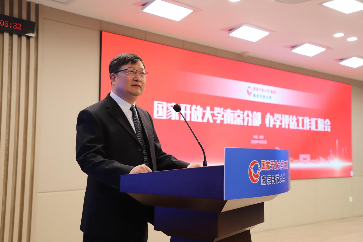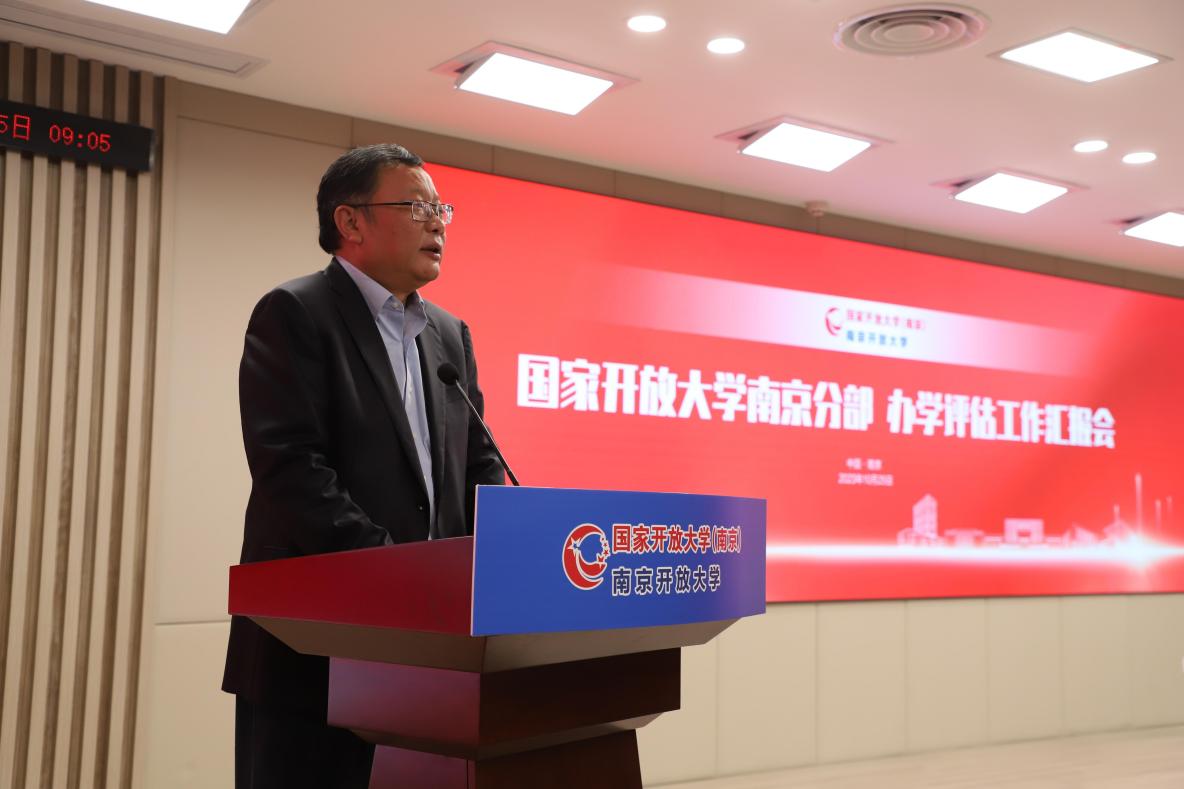 2023年10月25日,国家开放大学南京分部办学评估汇报会在新街口校区举行,教育部教育质量评估中心、国家开放大学分部办学评估专家组对爱游戏(中国)的实地办学评估工作拉开帷幕。专家组组长、北京市教委高等教育处原正处级调研员、中国高等教育学会继续教育分会副理事长刘承邠,副组长、云南开放大学原副校长罗骥,重庆商务职业学院党委副书记、院长江涛,泉州师范学院副校长夏侯建兵,浙江开放大学教务处处长厉毅,国家开放大学教务部副部长林秀钦,国家开放大学质量监控部副部长赵佳,国家开放大学实验学院技术服务中心主任王毅凡等专家组成员,南京市副市长孙百军,南京市政府副秘书长唐伯才,南京市教育局副局长潘东标,爱游戏ayx官网平台党委书记孙朝晖,爱游戏ayx官网平台党委副书记、校长陈社育及中层以上干部、各办学单位主要负责人、开放教育专业及课程负责人参加会议。汇报会由孙朝晖主持。