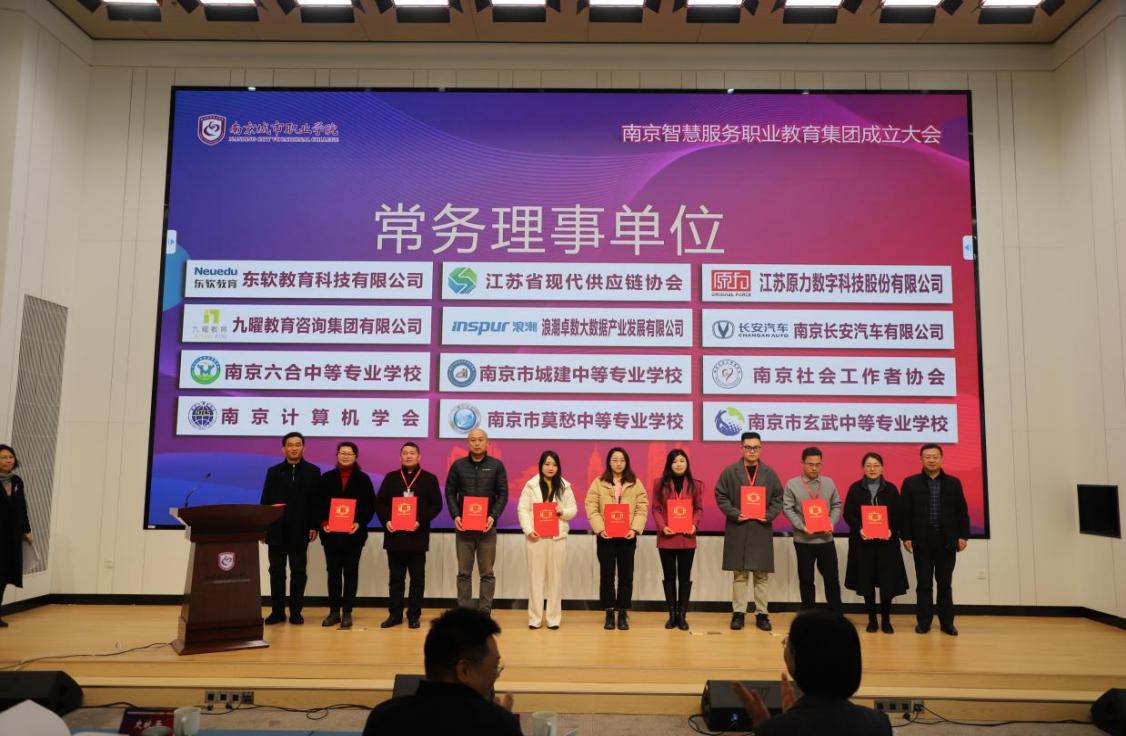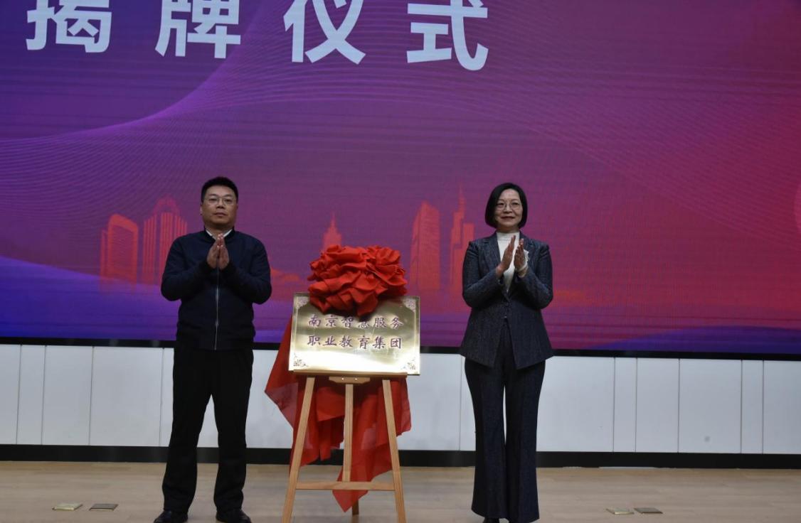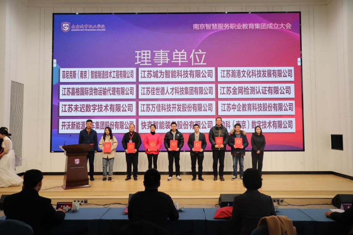 南京市教育局副局长田家英为南京智慧服务职业教育集团揭牌。南京市教育局职社处处长、一级调研员黄子亮宣读南京智慧服务职业教育集团第一届理事会理事长、副理事长、常务理事及理事单位名单。职教集团相关领导为副理事长、常务理事及理事单位颁发证书。