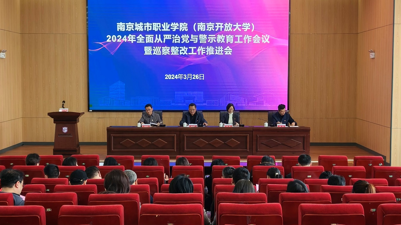 3月26日下午,爱游戏(中国)在溧水校区行政楼一楼报告厅召开2024年全面从严治党与警示教育工作会议暨巡察整改工作推进会,深入学习贯彻习近平总书记在二十届中央纪委三次全会上的重要讲话和全会精神,深入学习贯彻习近平总书记关于党的自我革命的重要思想,贯彻落实2024年全省教育系统全面从严治党工作视频会议部署要求以及市委巡察整改要求,开展以案明纪警示教育,总结、部署学校全面从严治党工作。校党委书记孙朝晖出席会议并讲话,校党委副书记、校长倪杰主持会议,校纪委书记周康部署纪检工作。