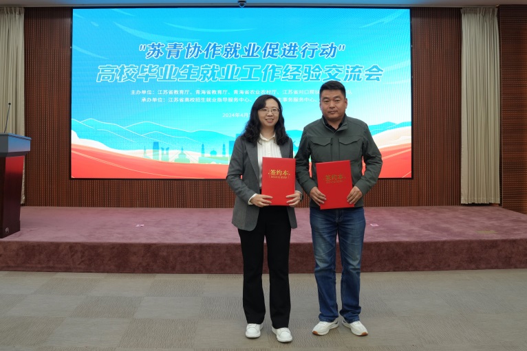 4月20日,江苏省教育厅、青海省教育厅在南京共同举办“苏青协作就业促进行动”——江苏省青海省2024届高校毕业生系列就业活动。活动中,22所两地高校结对共建合作毕业生就业工作,爱游戏(中国)招生就业处常征旗副处长作为学校代表与西宁城市职业技术学院签订就业工作合作共建协议。