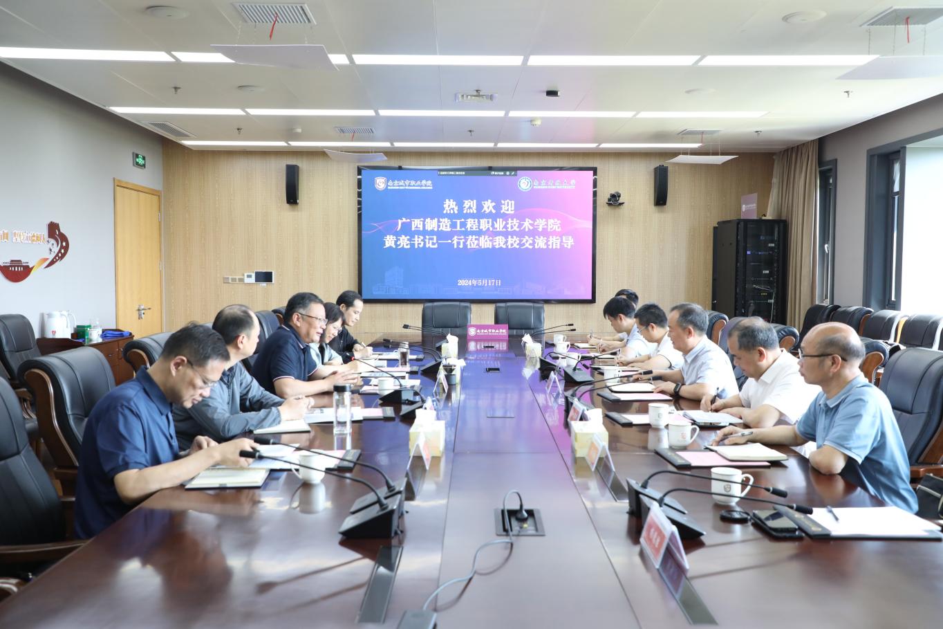 5月17日,广西制造工程职业技术学院党委书记黄亮及副校长赵骏新等一行7人到爱游戏(中国)调研交流。校党委书记孙朝晖,党委委员、副校长江景在溧水校区接待了黄书记一行,相关部门负责人参加交流与座谈。