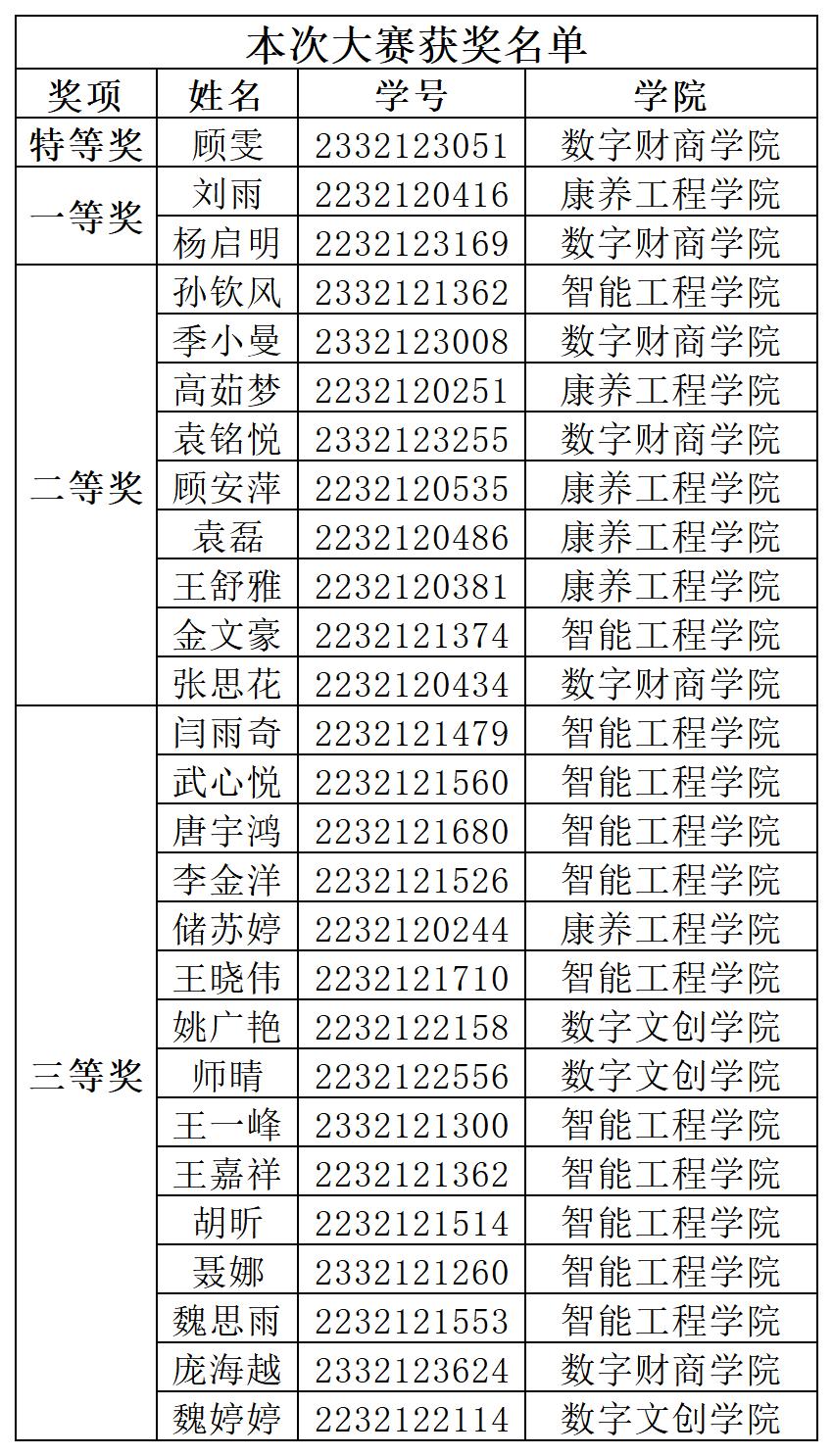 赛后,经组委会评判,爱游戏(中国)有1名同学获省特等奖,2名同学获省一等奖,9名同学获省二等奖,15名同学获省三等奖。获得省特等奖的顾雯同学和省一等奖的刘雨、杨启明同学将代表江苏省、代表爱游戏(中国)参加全国决赛,预祝他们取得优异成绩,也恭喜所有的获奖选手。