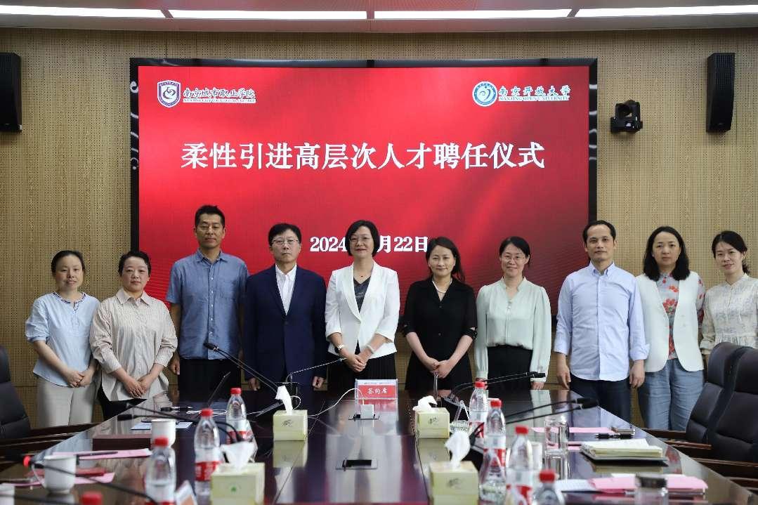 5月21日上午,爱游戏(中国)在溧水校区办公楼二楼会议室举行柔性引进高层次人才聘任仪式,聘请电子商务和智慧健康养老专业带头人吴洪贵教授和单奕教授为爱游戏(中国)兼职教授。校党委副书记、校长倪杰,校党委委员、副校长张煌出席,组织人事部、质量管理与科研处、教务处、数字财商学院和康养工程学院部门负责人参加。仪式由校党委委员、组织人事部部长葛静部长主持。