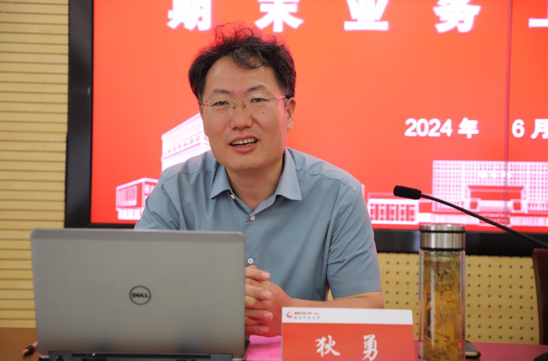 会上,狄勇总结了上一季的招生和考试工作,并部署下一季招生和本学期末考试工作。继续教育中心副主任乐艺对本学期教学情况进行了总结和通报。玄武开放大学校长张树明以《笃行不怠谋发展 奋楫争先提质量》为题,围绕开放教育招生、教学、考试和学生工作做了精彩的分享和发言。