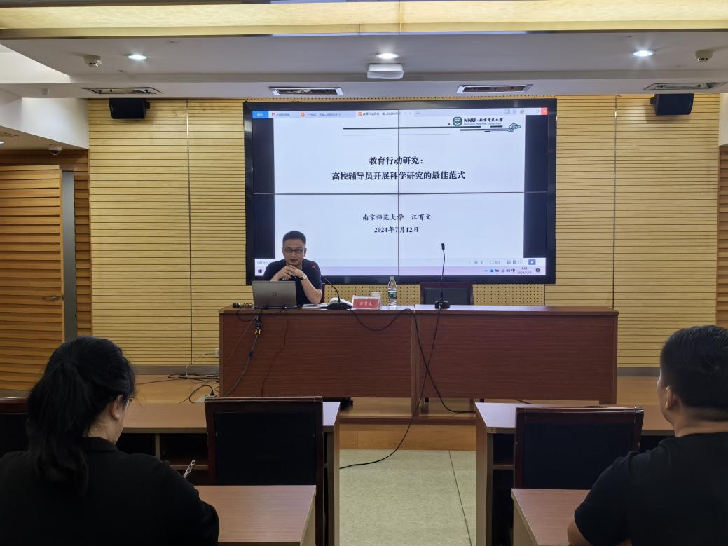 科研能力是辅导员专业化发展的重要支撑。在“辅导员科学研究能力提升”环节,江苏省自然科学基金青年基金项目、全国高等教育学会课题、教育部高校思想政治工作队伍培训研修中心课题、江苏省社科联应用研究精品工程课题、江苏高校辅导员工作研究会重点课题等项目的主持人、南京师范大学党委学工部副部长、学生工作处副处长汪育文以“高校辅导员开展科学研究的最佳范式”为题,围绕科研选题、研究方法、论文撰写等内容进行了深入讲解,并鼓励辅导员们将工作实践与科学研究相结合,不断提升自身的科研水平和创新能力。