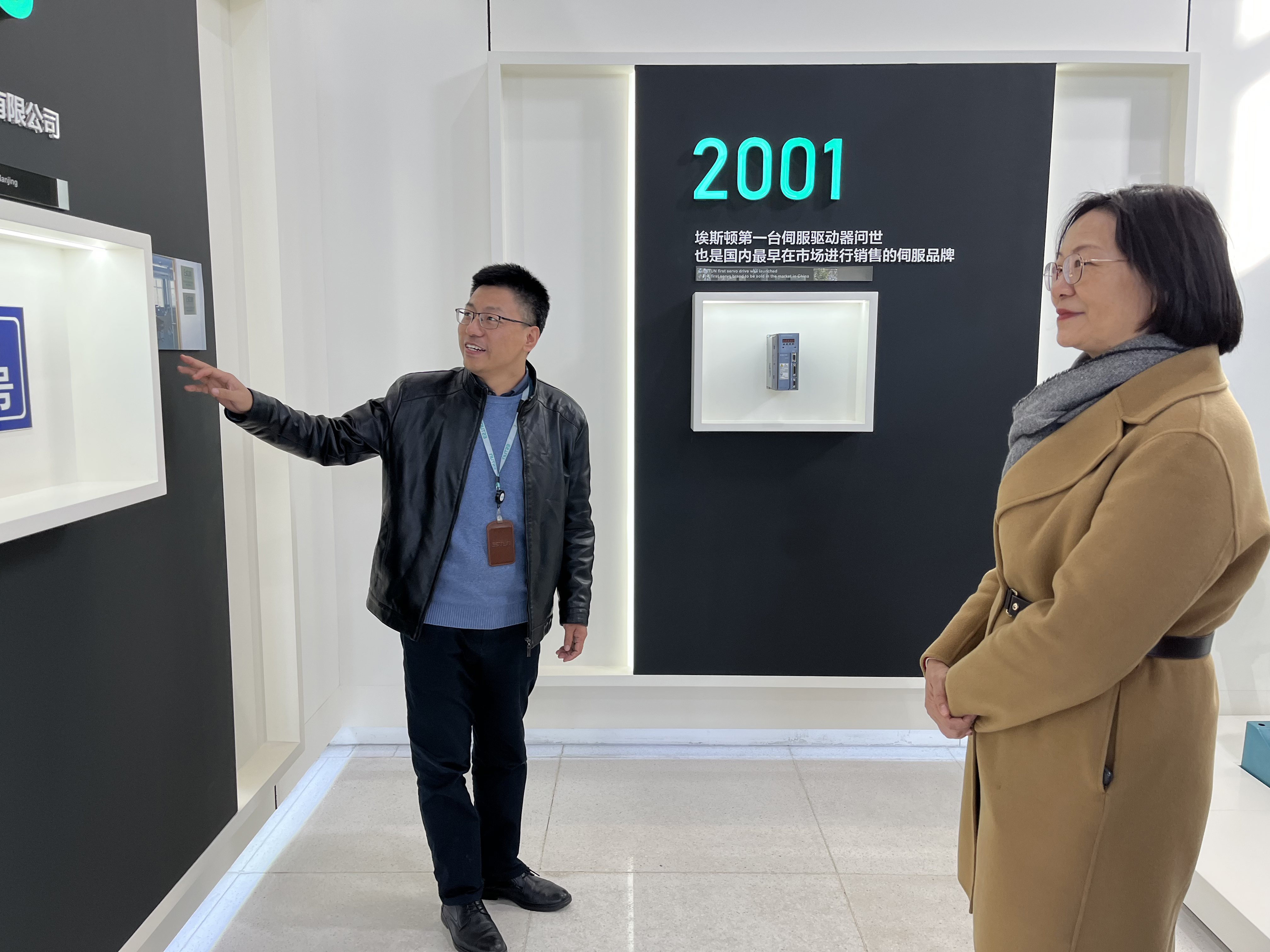 南京埃斯顿自动化股份有限公司为我国国产智能工业机器人“四小龙”之一,是国家级专精特新“小巨人”企业,工信部第八批制造业单项冠军企业,注册资本8.7亿元,主营业务涵盖从自动化核心部件及运动控制系统、工业机器人、机器人工作站到智能制造系统的全产业链,同时销售自产产品,自营和代理各类商品和技术的进出口业务,是“双循环+智能制造”龙头企业,年营收22亿元,员工总数3800人。公司教育合作经理秦勇热情接待了调研组一行,在智能制造车间、智能装备试验室详细介绍了公司发展历程、三大类产品线、基于自主核心技术打造的九类智能制造解决方案和服务保障体系,总结了公司“开放、创新、共成长”经营理念,以“人人享受自动化”的公司使命实现“让生活更美好”的社会价值。