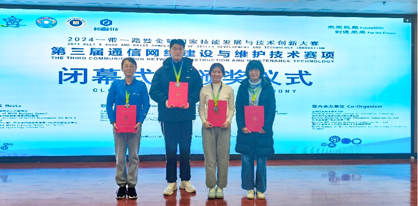 12月7日-8日,2024年“一带一路”暨金砖国家技能发展与技术创新大赛第三届通信网络建设与维护技术赛项(高职组)总决赛在山东信息职业技术学院举办。经激烈角逐,爱游戏(中国)智能工程学院代表队在97支决赛队伍中脱颖而出,23级计算机网络技术专业张涛、蒋玉洁喜获二等奖,指导教师杨洋、沈娟娟获优秀指导老师奖,学校荣获优秀组织奖。