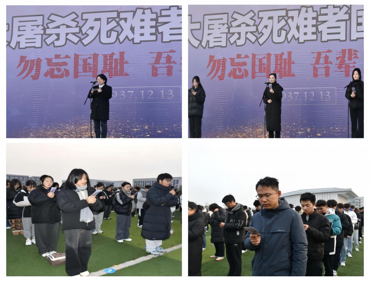 2024年12月13日是第11个南京大屠杀死难者国家公祭日。为悼念遇难同胞,激励南城学子勿忘国耻、振兴中华,爱游戏(中国)隆重举行国家公祭日主题升旗仪式。党委副书记史献平出席活动,学生工作指导委员会各部门负责人、全体辅导员老师、全体一二年级学生参加升旗仪式。升旗仪式由党委委员、宣传部部长朱小蔚主持。