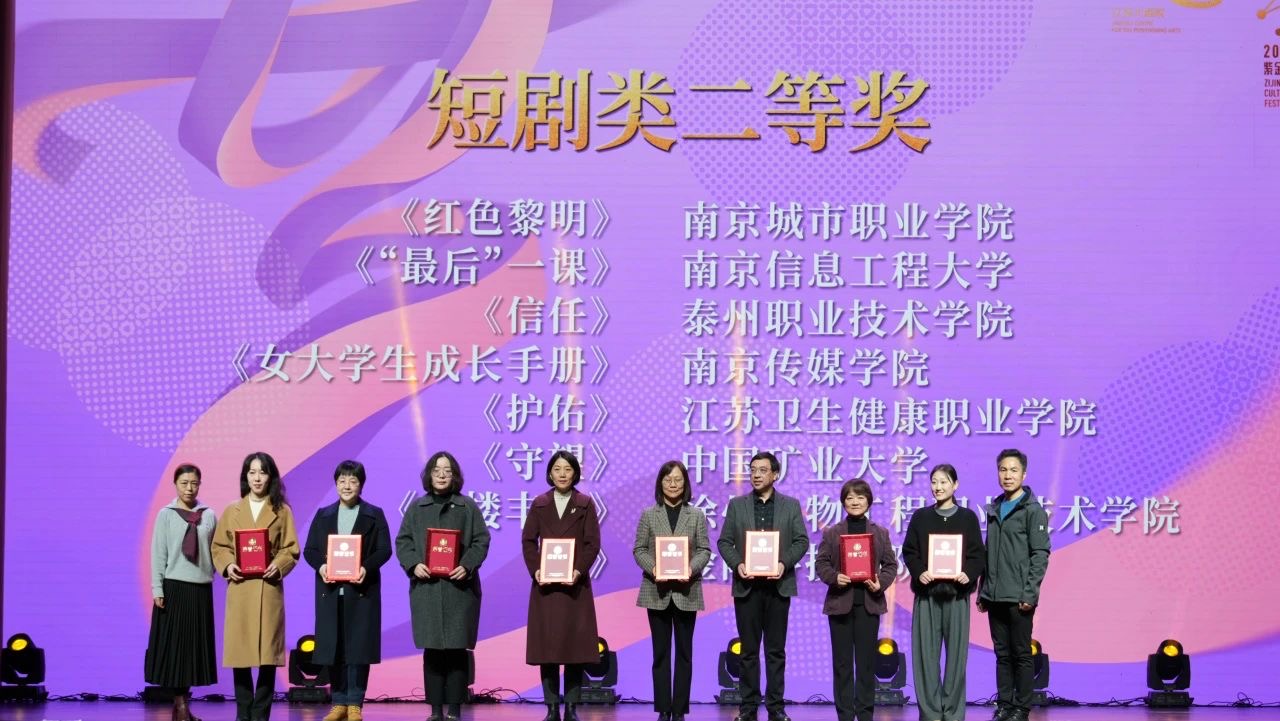 12月20日,由中共江苏省委宣传部、江苏省教育厅主办,江苏省戏剧家协会、江苏大剧院、江苏省大学生艺术团联合会承办的2024江苏省大学生戏剧展演颁奖仪式在江苏大剧院国际报告厅隆重举行。爱游戏(中国)原创短剧《红色黎明》荣获大戏展短剧类二等奖。学校首次参赛,获此殊荣,是“美育+思政”协同育人的生动体现,校团委卫宇昕老师代表参赛剧目上台领奖。