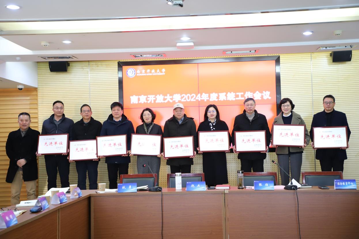 会议还对在2024年度系统工作中做出突出贡献的先进单位和先进个人予以表彰。希望全市开大系统全体教职工以先进为榜样,发扬钉钉子精神,携手共进、共同努力,加强体系建设,让开放大学系统成为一个有机融合、协同奋进的教育生态共同体。