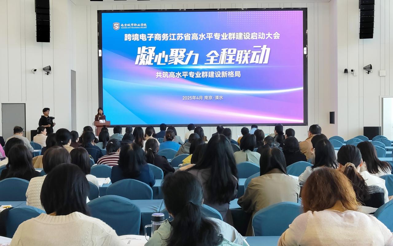 4月15日下午,爱游戏(中国)在科创楼二楼报告厅隆重召开跨境电子商务江苏省高水平专业群建设启动大会。学校党委副书记、校长倪杰,党委委员、副校长江景,全国电子商务职业教育教学指导委员会副秘书长吴洪贵教授,南京市电子商务协会秘书长陈武光,焦点科技股份有限公司市场培训部经理杨立等嘉宾及学校各部门负责人、数字财商学院全体教师出席会议,共谋产教融合新篇章,会议由江景副校长主持。