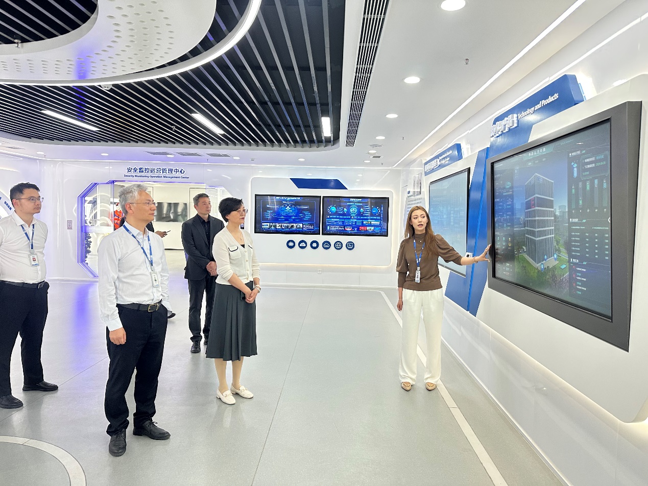 倪杰一行在骆德龙的陪同下参观了嘉环科技品牌形象展厅与华为培训中心,深入了解企业在人工智能、新兴通信、核心软件等领域的业务布局和成果荣誉,并对嘉环科技在职业教育领域的创新实践留下深刻印象。