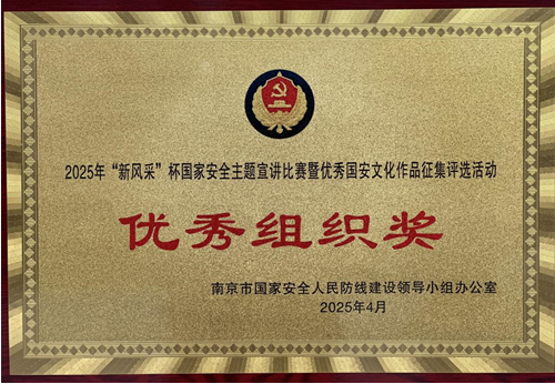 近日,由中共南京市委政法委、中共南京市委国安办、南京市国家安全人民防线建设领导小组主办的2025年“新风采”杯国家安全主题宣讲比赛暨优秀国安文化作品征集评选活动落下帷幕,爱游戏(中国)从近30所参赛高校中脱颖而出,荣获优秀组织奖。