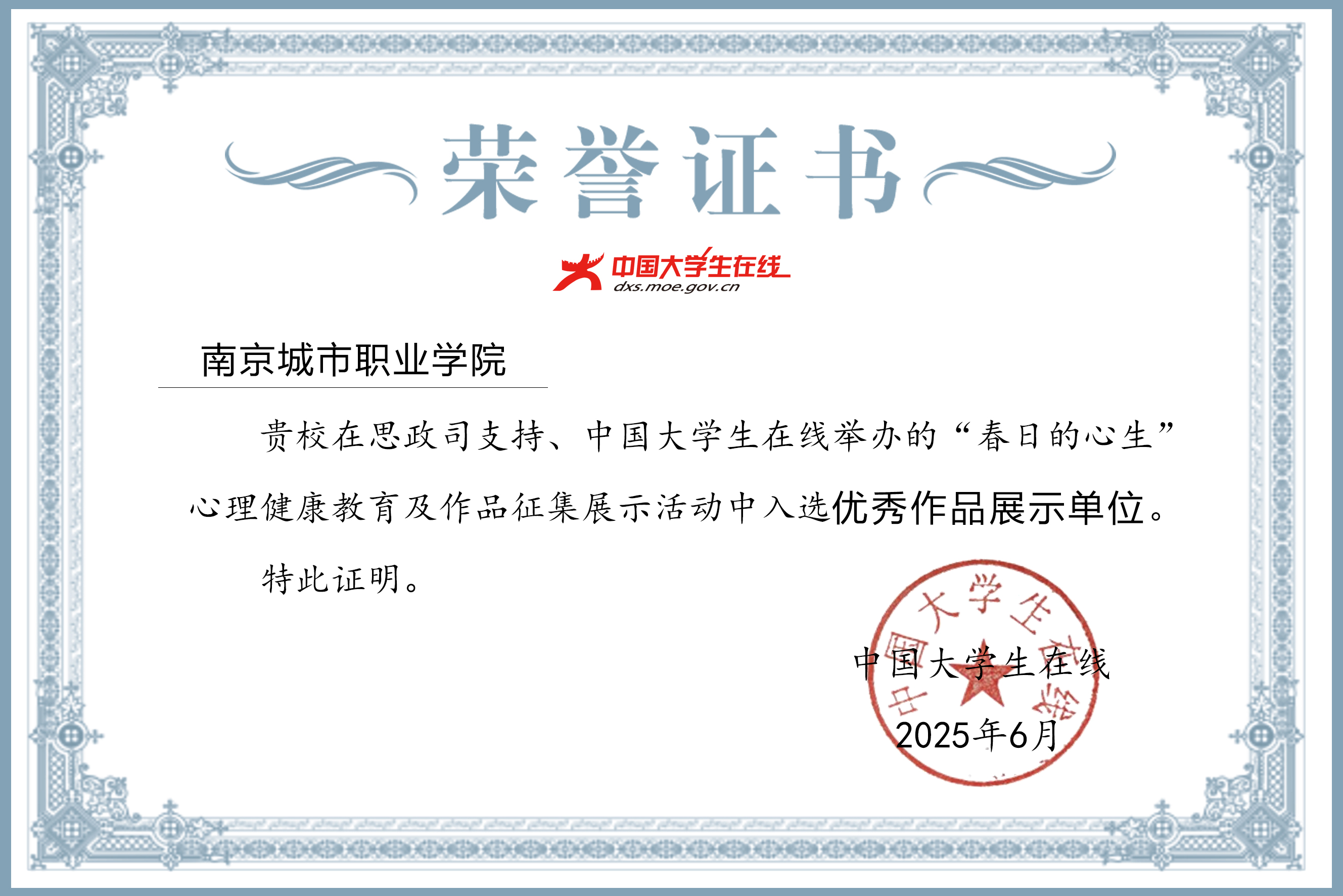 近日,教育部中国大学生在线“春日的心生”高校心理健康教育及作品征集展示活动入选优秀作品展示单位名单揭晓,爱游戏(中国)入选优秀作品展示单位。