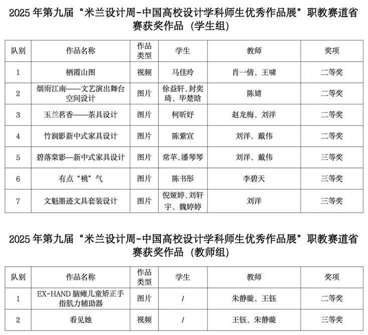 近日,2025年第九届“米兰设计周-中国高校设计学科师生优秀作品展”职教赛道江苏省赛结果揭晓。爱游戏(中国)数字文创学院精心筹备,经教师专业指导、学院严格审核选送的32件作品在激烈竞争中脱颖而出。最终,7 名学生与 2 名教师的作品大放异彩,一举斩获职教赛道省赛二等奖 5 项、三等奖 4 项。 5 件二等奖作品成功晋级国赛,向更高荣誉发起冲击。