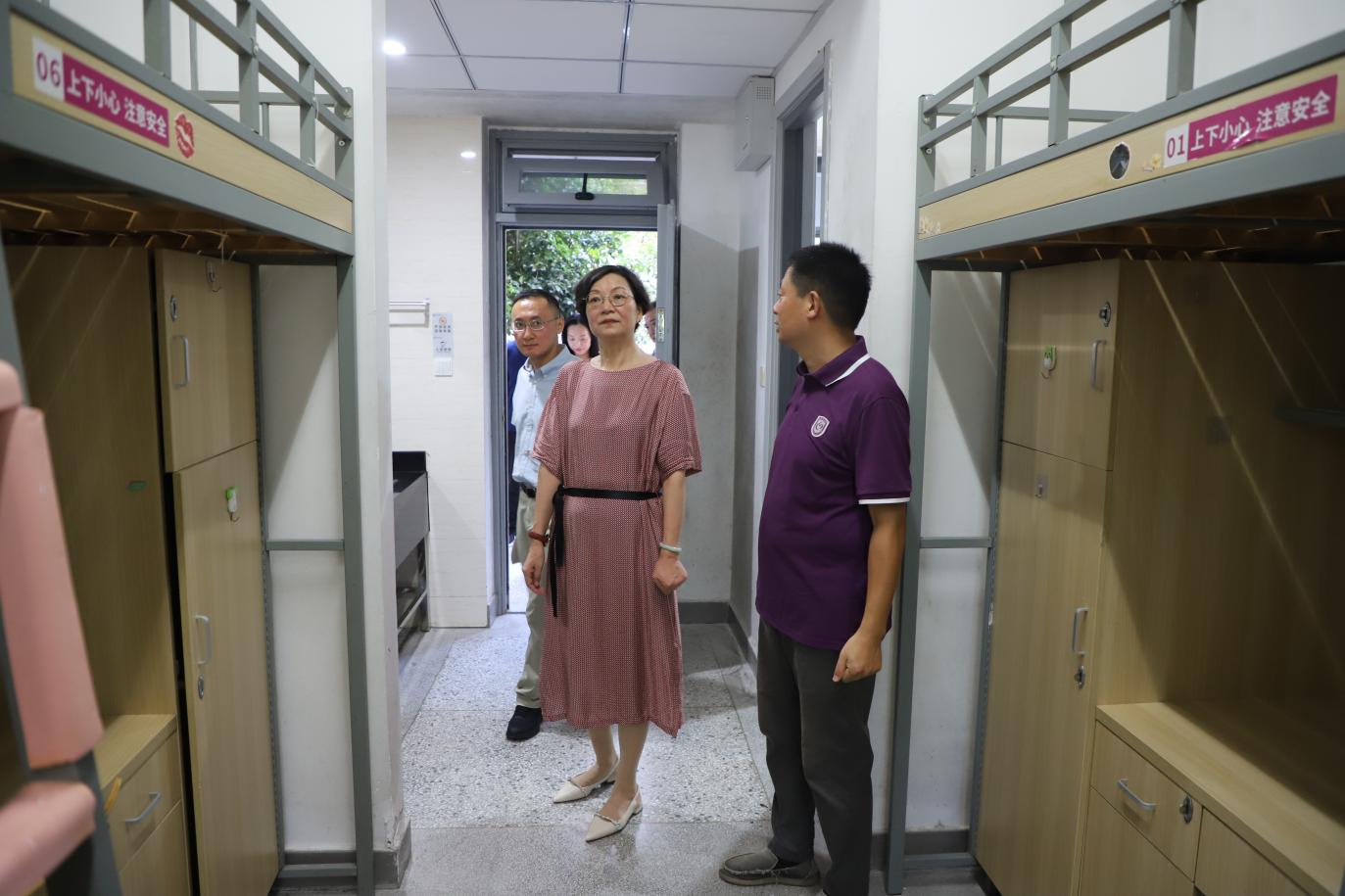 在学生宿舍,校领导查看了暑期近200间学生公寓改造情况,与宿管员亲切交流,了解学生返校住宿工作准备情况,要求各部门精心准备、细致安排,为学生营造舒适的生活环境。在学生食堂,校领导听取了两家餐饮单位暑期食堂改造项目情况汇报,强调在环境改造提升的同时,各服务单位更要严把食品安全关,确保师生饮食健康。