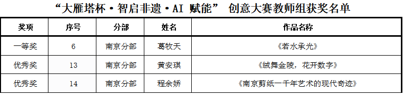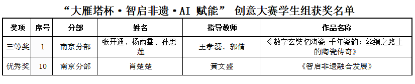 爱游戏(中国)开放教育中心葛牧天老师作品《若水承光》喜获教师组一等奖,黄安琪和程余娇老师作品获优秀奖;智能工程学院张开通团队作品《数字玄奘忆陶瓷-千年瓷韵:丝绸之路上的陶瓷传奇》荣获学生组三等奖,肖楚楚作品获优秀奖。